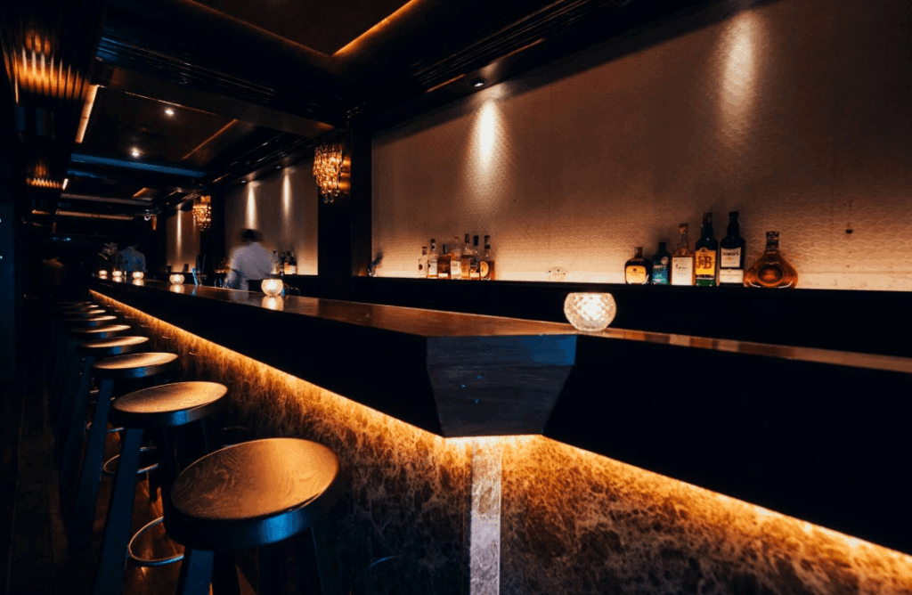 Indretningen er mørk, varm og indbydende. Tunge gardiner, vintage lænestole, dæmpet belysning og reoler fyldt med vinyler sætter tonen. Bag baren står nogle af Bangkoks dygtigste bartendere, klar til at servere tidløse drinks med præcision og personlighed – fra perfekt balancerede Negronis og Old Fashioneds til deres egne sofistikerede fortolkninger.