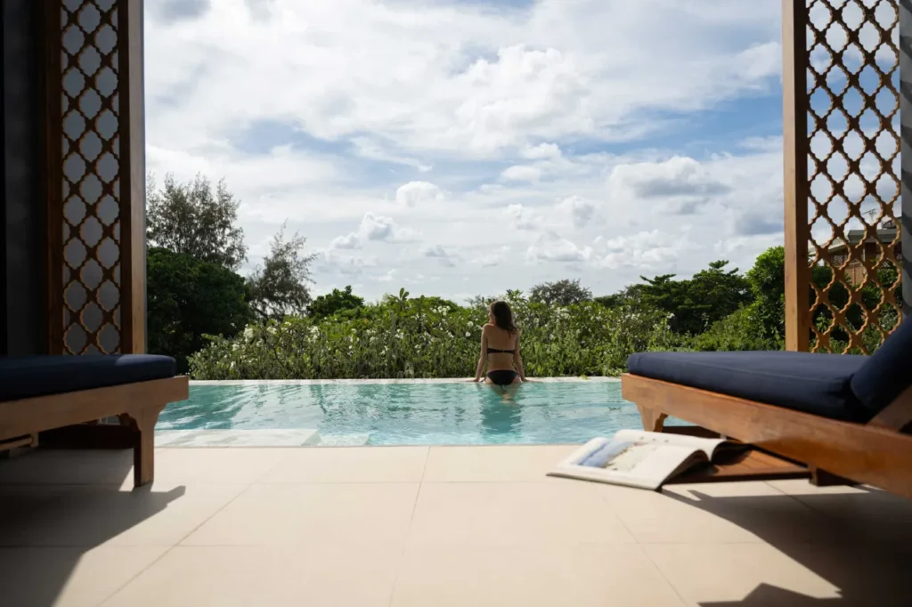 Hotellet har også en stor pool med swim-up bar, fitnesscenter, stilfuld restaurant og rooftop lounge. Alt er gennemført og gennemtænkt – fra service til stemning.
