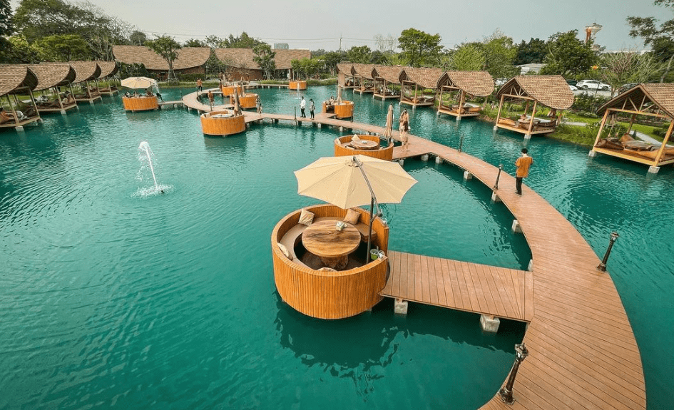 Bubble in the Forest er ikke bare en café – det er en oplevelse, der er skabt til både sanser og kamera. Beliggende i Nakhon Pathom, lidt uden for Bangkok, har caféen taget sociale medier med storm med sin spektakulære setting: små “boble”-pavilloner bygget over vand, forbundet af træbroer, med grønne palmer og rislende vand overalt.