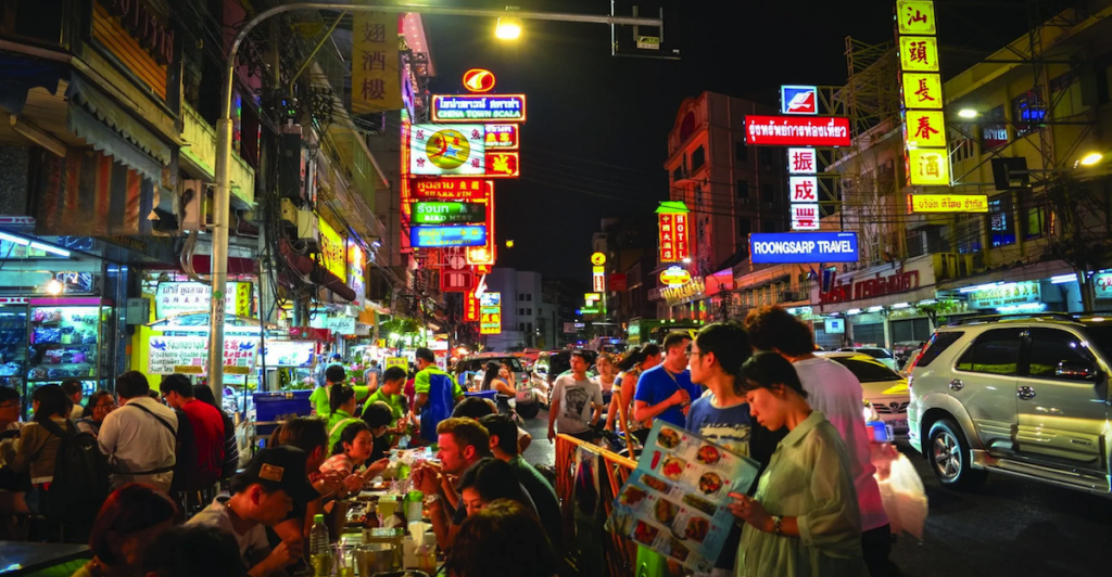 Chinatown er især kendt for sin madscene, og om aftenen forvandles Yaowarat Road til et af byens bedste steder at opleve street food. Du kan smage alt fra grillet havtaske, dim sum og kinesisk stegt ris til den berømte thailandske hajfinnesuppe og klassiske desserter som mango sticky rice og kinesiske kastanjer.