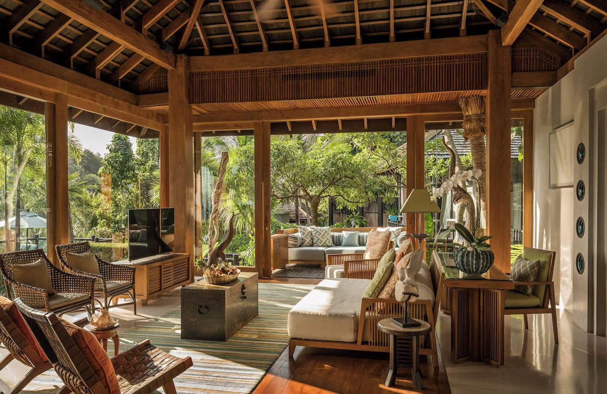 Indretningen er sofistikeret med thailandsk håndværk, naturmaterialer og moderne komfort.