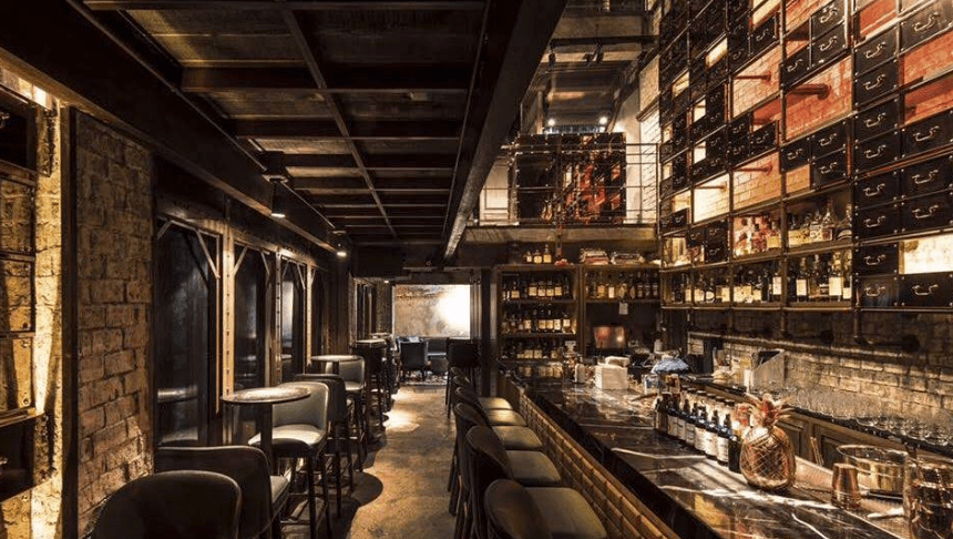 Rabbit Hole er en af Bangkoks mest ikoniske speakeasy-bars – skjult bag en anonym sort dør på Sukhumvit Soi 55 (Thonglor). Udefra ligner det ingenting, men når du først træder indenfor, åbner der sig et treetagers cocktailunivers med mørkt træ, dæmpet belysning, messingdetaljer og en bar, der er lige så smuk som den er velforsynet.