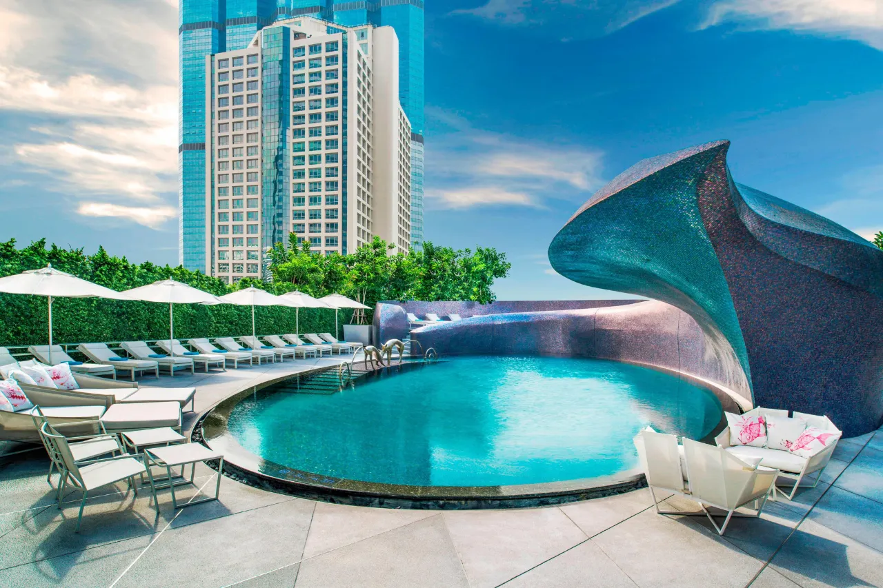 W Bangkok Hotel er det oplagte valg for dig, der vil bo midt i byen med maksimal stil, farver og personlighed – og hvor hver eneste krog er skabt til at blive delt på Instagram. Hotellet kombinerer urban luksus med legesygt design, elektronisk atmosfære og masser af fotoværdige detaljer.