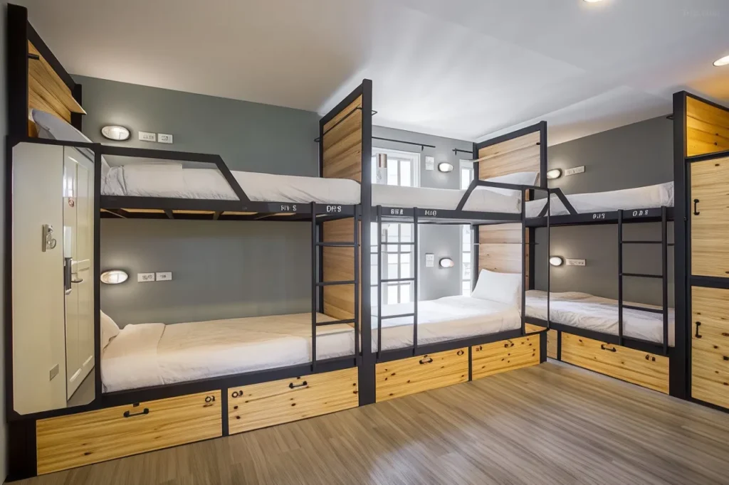 Hostellet tilbyder både sovesale og private værelser med aircondition, opbevaringsskabe og individuelle gardiner for mere privatliv. Indretningen er moderne og minimalistisk med lyse farver og praktiske detaljer – alt holdes meget rent og pænt.